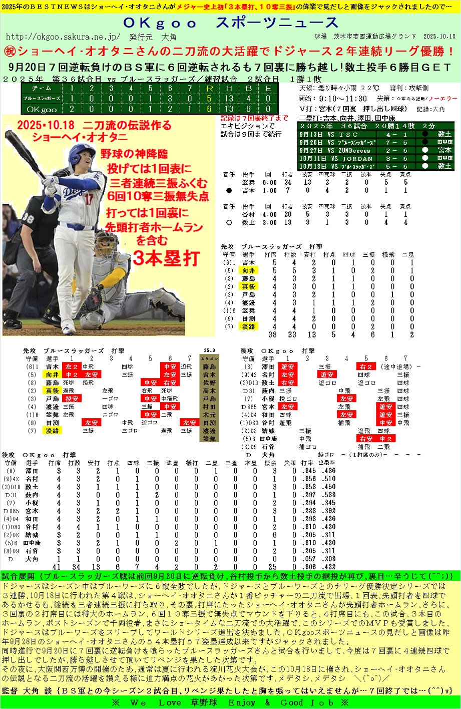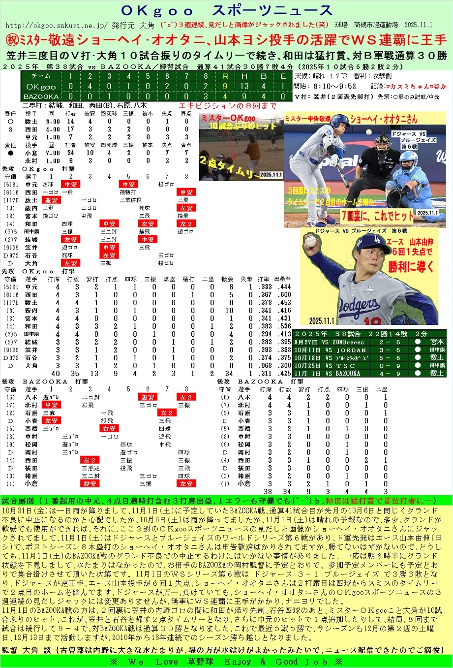 2025年の3回目は11月1日に行いましたOKgooとBAZOOKAさんとの通算41試合目分のスポーツニュース